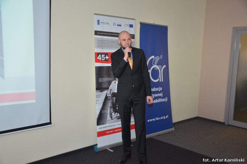 Spotkanie rozpoczął pan Krzysztof Kaca, Zastępca Dyrektora Wydziału Realizacji Programów, przedstawiając plan konferencji oraz witając zaproszonych gości, w szczególności przedstawicieli zarządu Fundacji Aktywnej Rehabilitacji „FAR”, panią Elżbietę Głogowską i pana Rafała Skrzypczyka, a także pana Jana Lacha, przedstawiciela Biura Pełnomocnika Rządu ds. Osób Niepełnosprawnych i jednocześnie członka Grupy Sterującej Projektem.