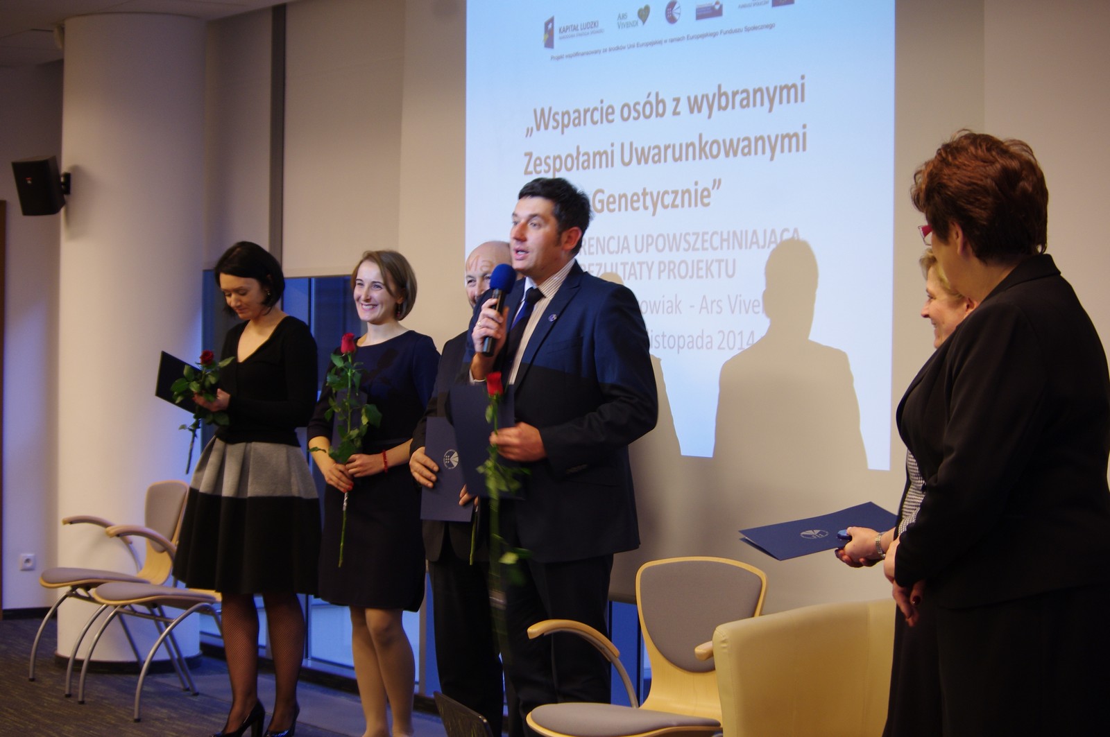 W dniu 18 listopada 2014 r. w Centrum Konferencyjnym ZIELNA przy ul. Zielnej 37 w Warszawie odbyła się konferencja podsumowująca realizację projektu pn. „Wsparcie osób z wybranymi Zespołami Uwarunkowanymi Genetycznie”. Konferencja miała na celu upowszechnianie rezultatów projektu. Projekt realizowany był w ramach Programu Operacyjnego Kapitał Ludzki, Priorytetu I – Zatrudnienie i integracja społeczna, Działania 1.3 - Ogólnopolskie programy integracji i aktywizacji zawodowej, Poddziałania 1.3.6 - PFRON – projekty systemowe. Projekt współfinansowany był ze środków Unii Europejskiej w ramach Europejskiego Funduszu Społecznego.